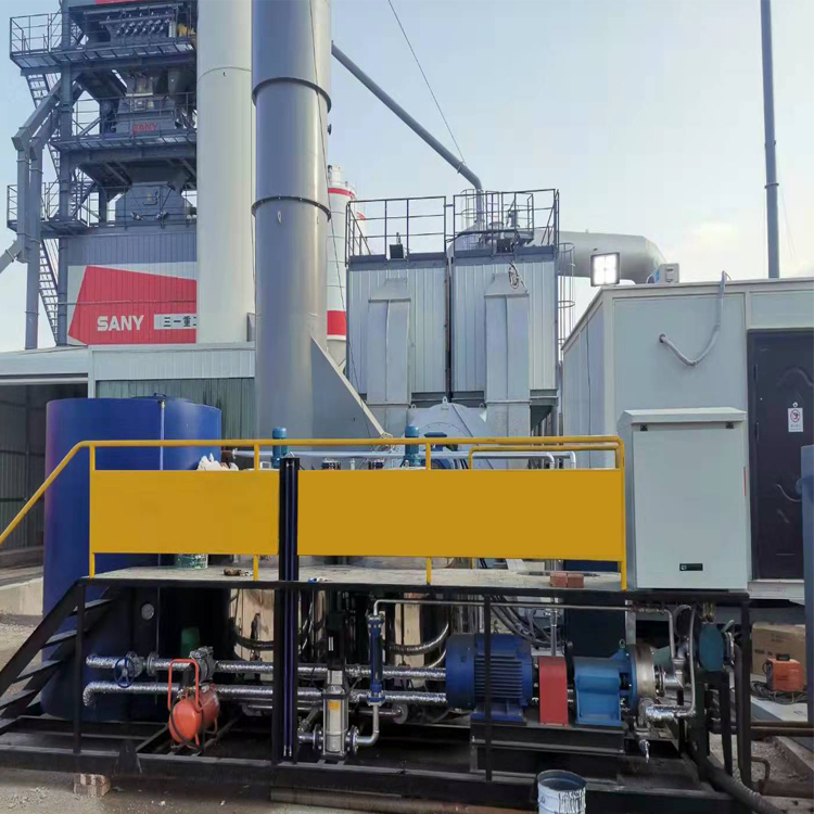 該型號的乳化設備采用導熱油進行乳化瀝青生產用水加熱,應用在配備有導熱油爐的生產廠。