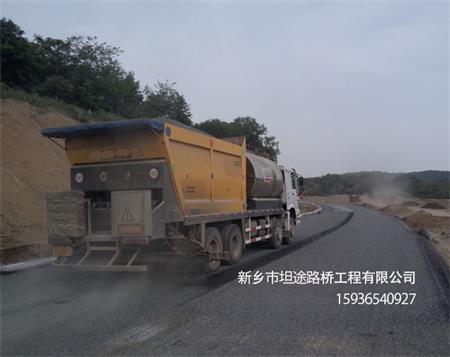 異步碎石封層是采用行粘結(jié)材料的噴灑再進(jìn)行碎石的撒布的施工工藝。目前使用較少,一般用在路面窄,大型設(shè)備不易掉頭的縣鄉(xiāng)道路。