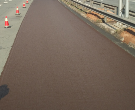 縱向接縫與攤鋪方向及路線方向一致,若處理不好影響微表處的總體外觀。因此盡量把縱向接縫放在劃標線的位置上,這樣就可以使縱向接縫被標線所覆蓋,不影響總體  美觀。