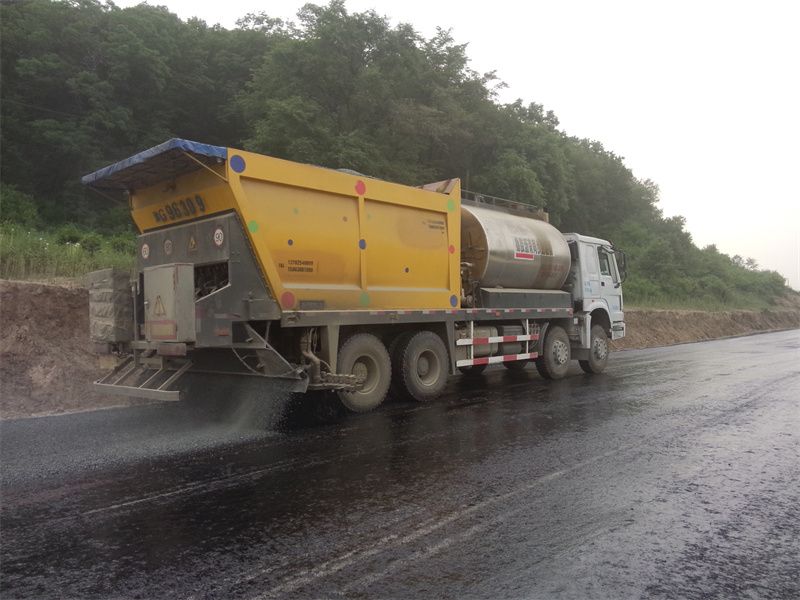 (2)先灑布的粘結材料可以填充原有路面的細小裂縫,可以起到防水的作用,新的面層可以起到抗滑的功效。
