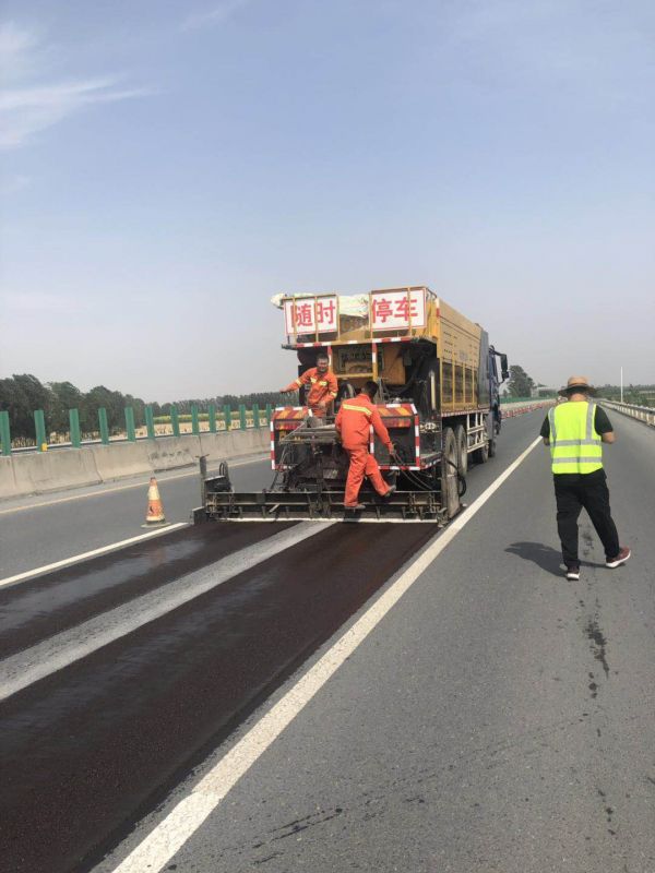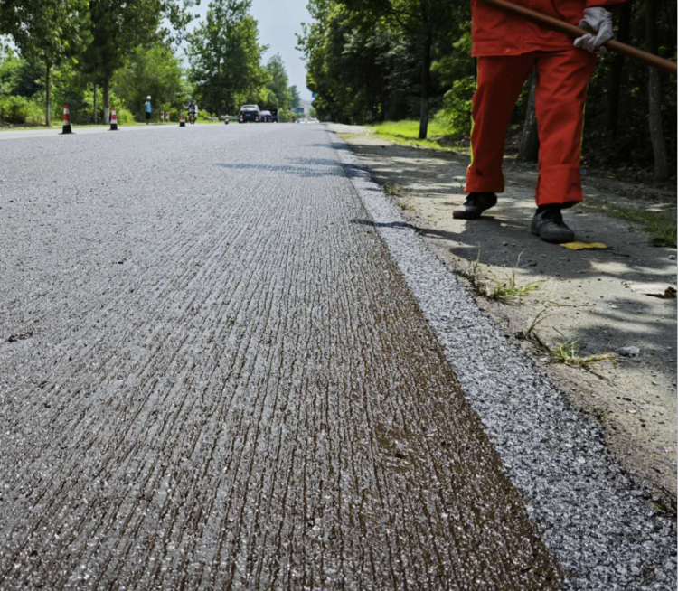 在施工過程中,超粘纖維微表處首先噴灑一層粘層油。這層粘層油的目的是增強原路面與微表處之間的粘結(jié)力,使其與原路面形成一個整體。同時,粘層油還能填補原路面的細微裂縫,防止水分的滲透。纖維微表處是指在微表處混合料中加入纖維,以提高其抗裂性能和耐久性。這種纖維物料在混合料中均勻分布,纖維的加入起到加筋的作用,使其不易脫落。